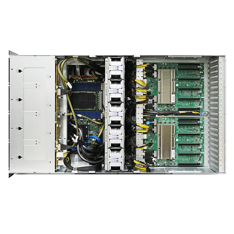 5U 10 GPU server supports maximum 10 dual-slot GPU cards with up to 450W each