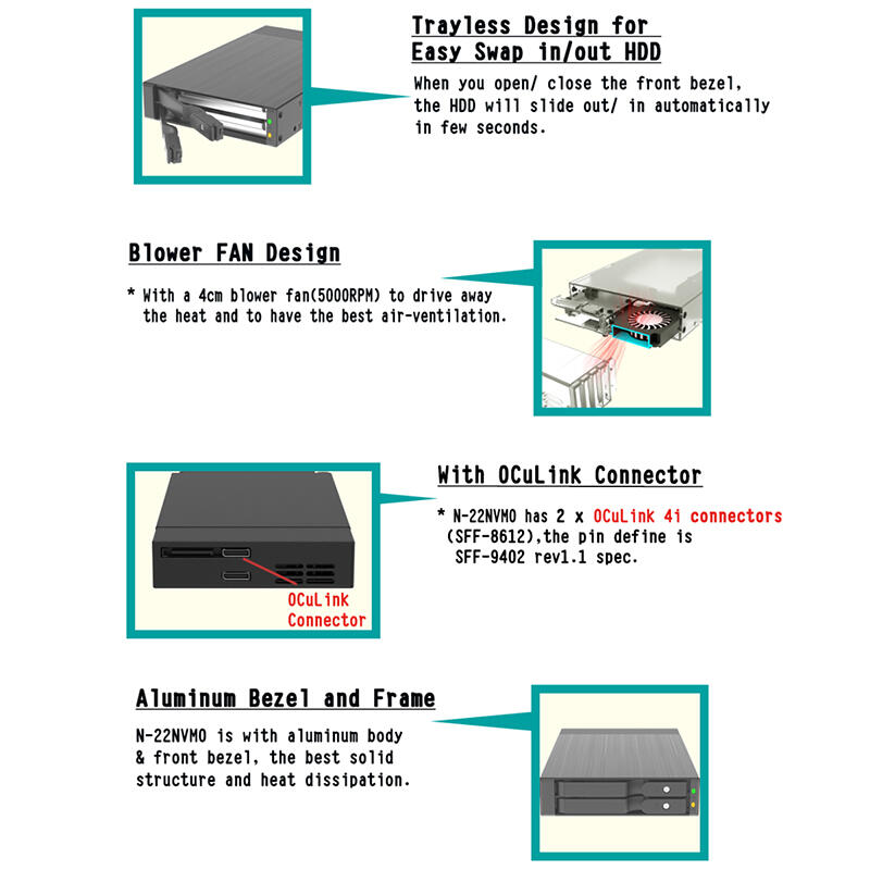 OCuLink(SFF-8612) Connector X 2 15pin Power Connector X 1 |