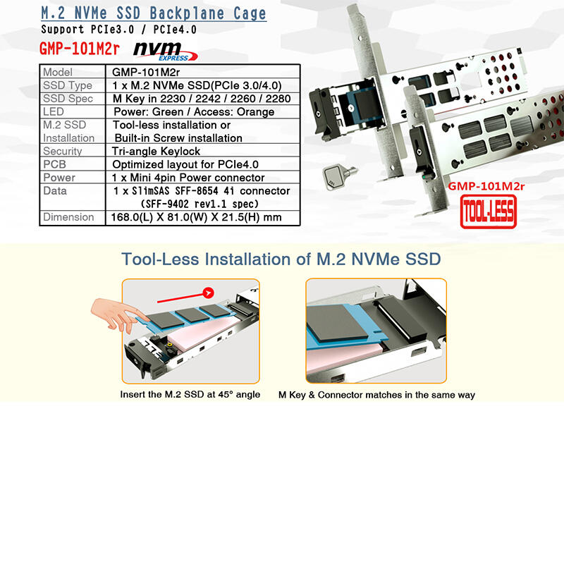 Body: Slimline SAS(SFF-8654)X4 Connector X 1 Small 4pin Power Connector X 1 2pin Fan Jumper X 1 Tray: Slimline SAS X8 Connector |
