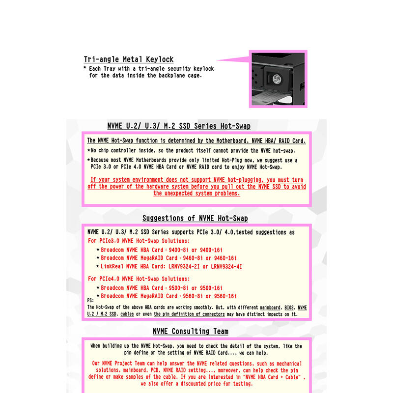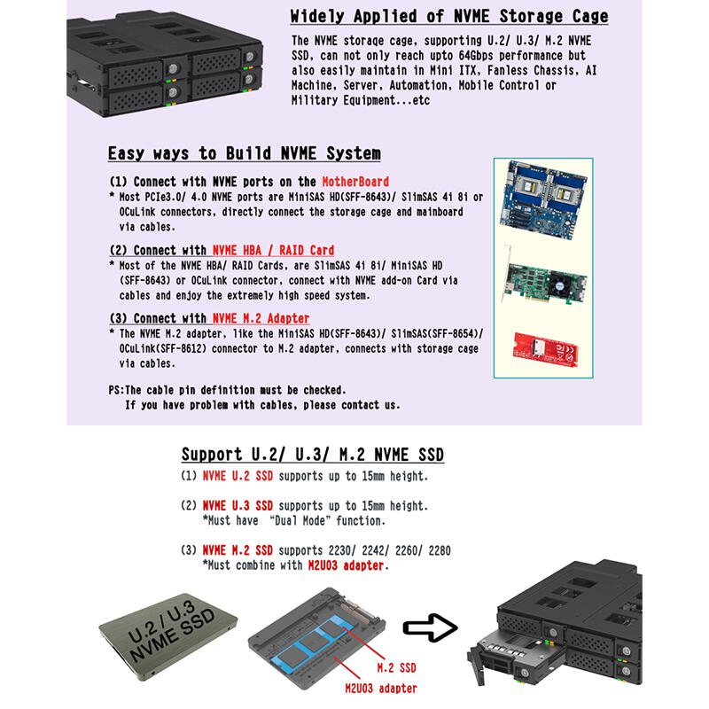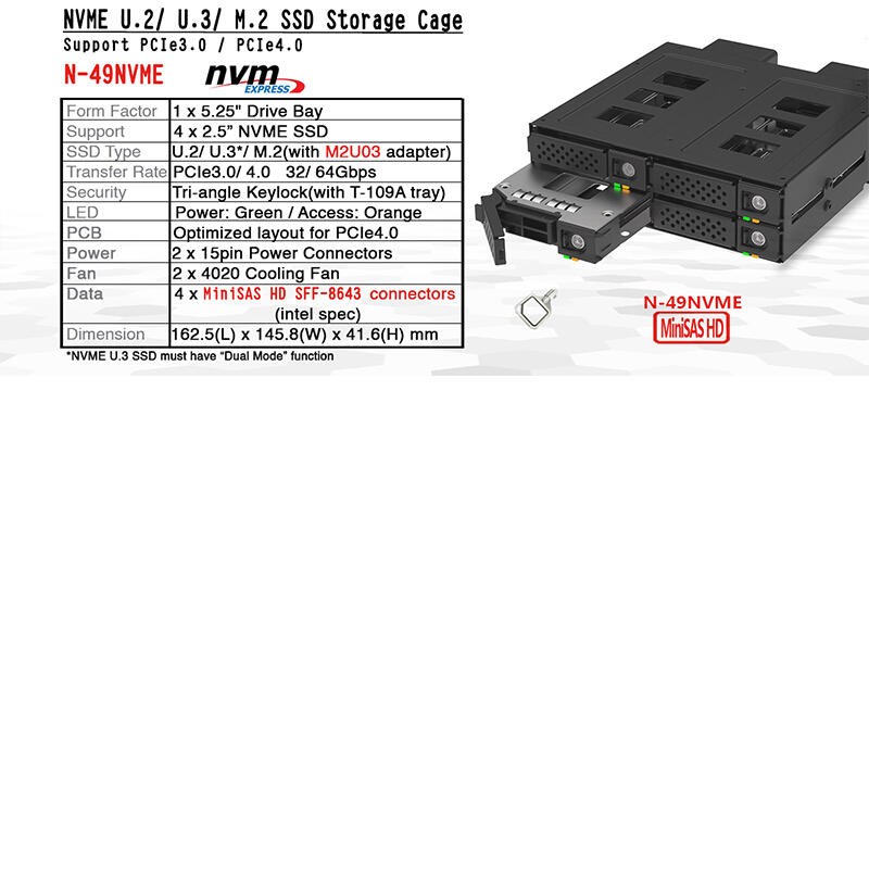 U.2/ U.3(With Dual Mode) M.2(With M2U03 Adapter), 2230/ 2242/ 2260/ 2280 |