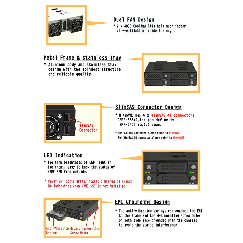 4 X 2.5" NVME SSD(Up To 15mm) |