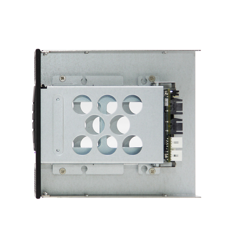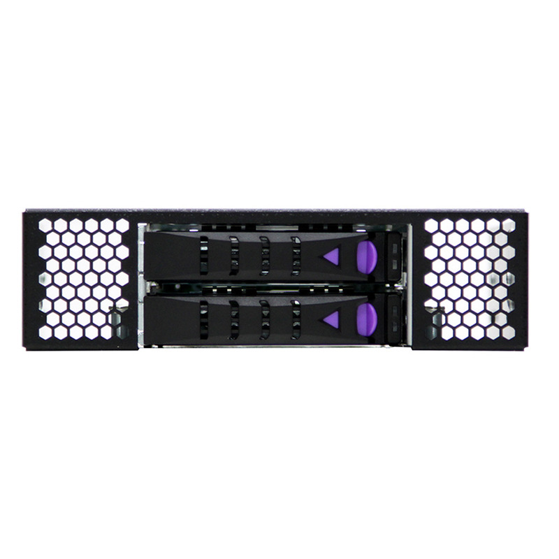 This drive enclosure converts 1 x 5.25 drive bay to 2 x 2.5 SFF hot swap bays, supporting 2 NVMe PCIe SSDs. The drive trays are tool-less. No tools are needed for installation and removing of drives.