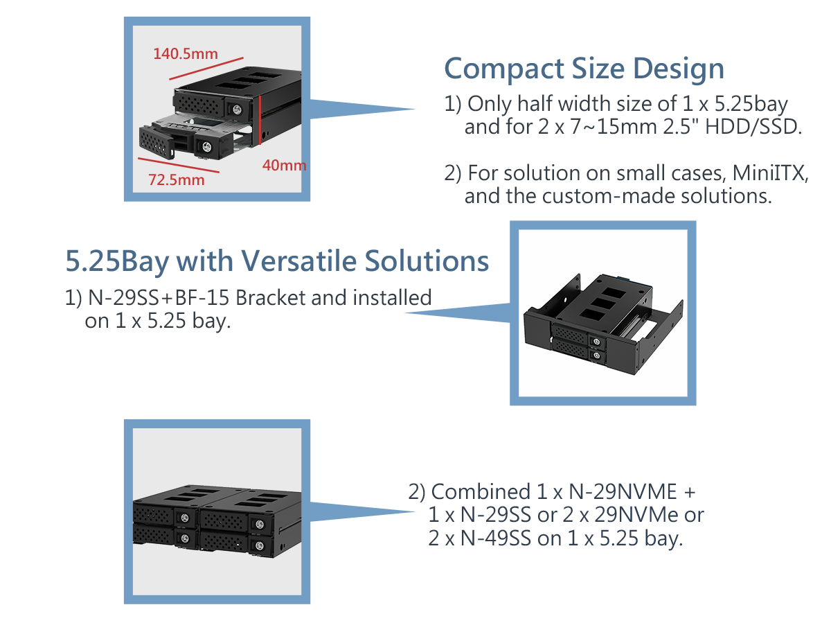 1x 5.25" Drive Bay Width Size