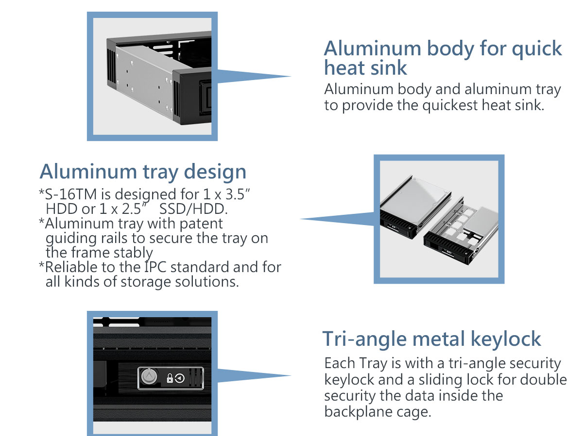 1 X 3.5” & 2.5" SATA I, II, III & SAS I, II, III (12Gbps) HDD/ SSD