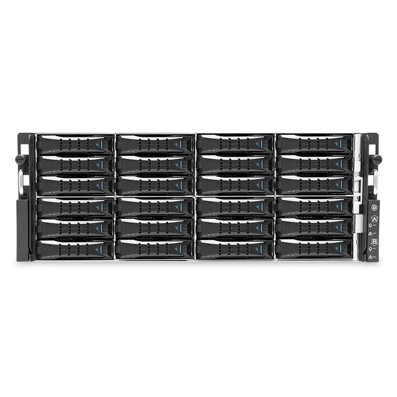 4U 24x SAS 12Gbs bay system with provides high availability in an active-active configuration. It comes with two AIC Server Boards (one board per node), each supporting dual Intel® Xeon® Scalable family (ICE LAKE) processors.