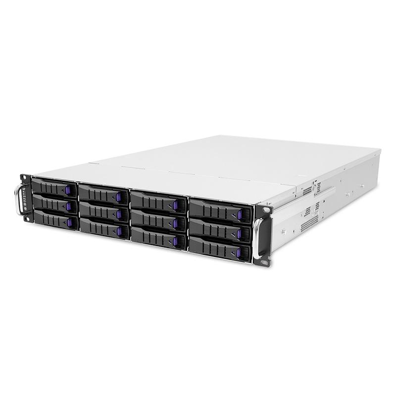 2U General Purpose Storage Server supports 12 hot-swap 3.5”/2.5” universal SATA/SAS/NVMe U.2 drive bays