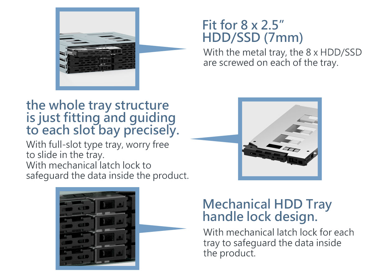 8 X 2.5” SATA I, II, III & SAS I, II HDD/SSD * (Height Up To 7mm)