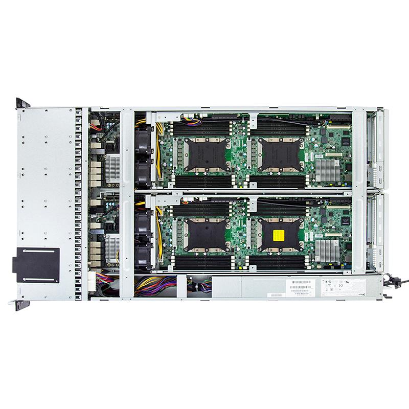 2U 24-bay high availability storage server, 2x canisters, 2x AIC Pavo motherboard(one board per node), 1x backplane(24x SATA backplane), 1300W redundant power supply, 2x riser card, 4x 6056 fans, 4x 1U passive heatsink, 28" slide rail, w/o bezel |