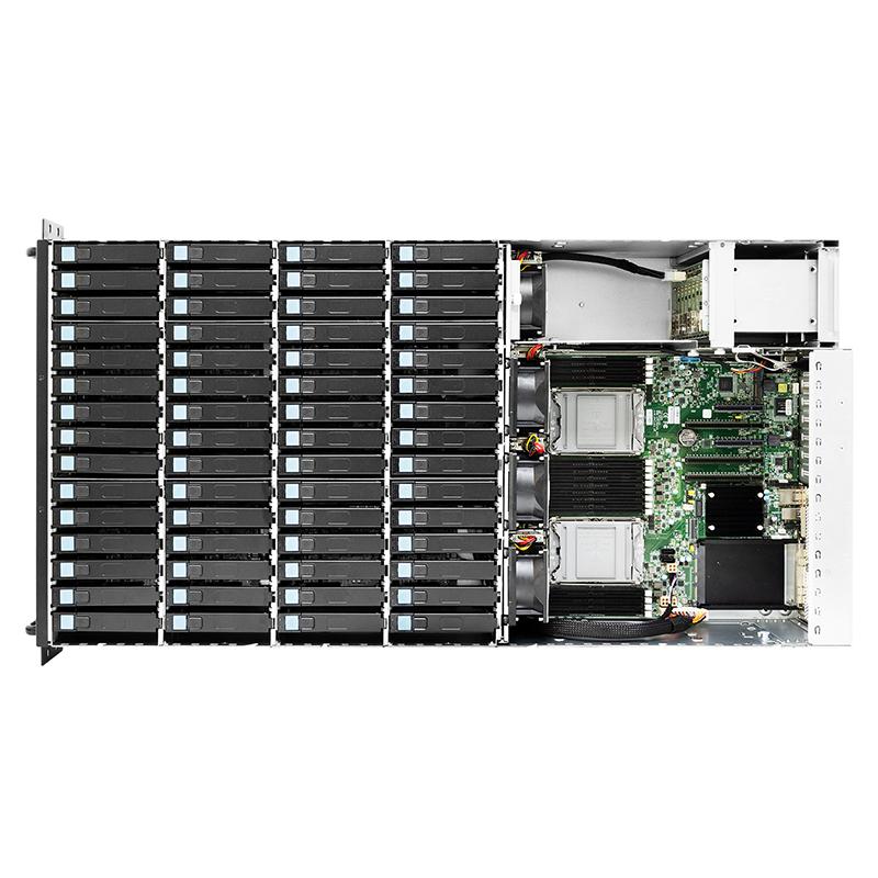 | External : 2/4/6/8 x 2.5” hot-swap Internal : 60 x 3.5” hot-swap |