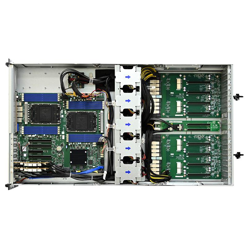 • 4U 8 GPU server supports maximum 8 dual-slot GPU cards with up to 450W each