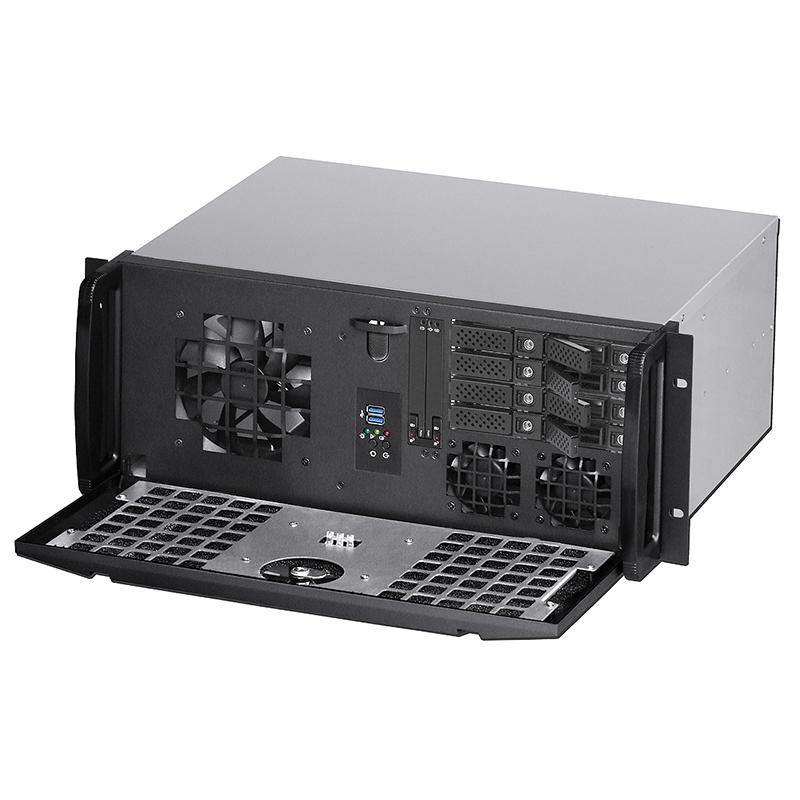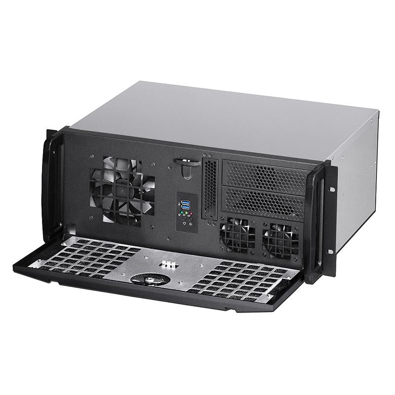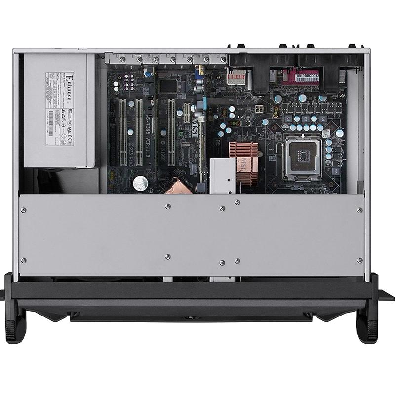 The stealth stylish architecture of the front door design, with stable and low noise fans, in line with good ventilation and dust protection requirements, suitable for the server cooling environment, global quality assurance and warranty for three years. One of the advantages of this E430e server is that the depth is only 300mm, the front can be installed two 5.25" ODD devices, this space can also be equipped with a number of hotswap HDD mobile racks, also this chassis can also install one 3.5" or two 2.5" SSD/HDD. The sheet metal mechanism design using 1.2mm thickness SGCC ultra-high strength material, all sheet metal cut-off surface are smooth folding design to ensure free-damage to hands or fingers, the front of the security door design can also ensure data security, to avoid improper disc burning or USB drive replication data causing security vulnerabilities. In addition to the general standard 12" x 9.6" ATX motherboard, this model can also be installed MicroATX or Mini-ITX motherboard, suitable for a variety of system environments.