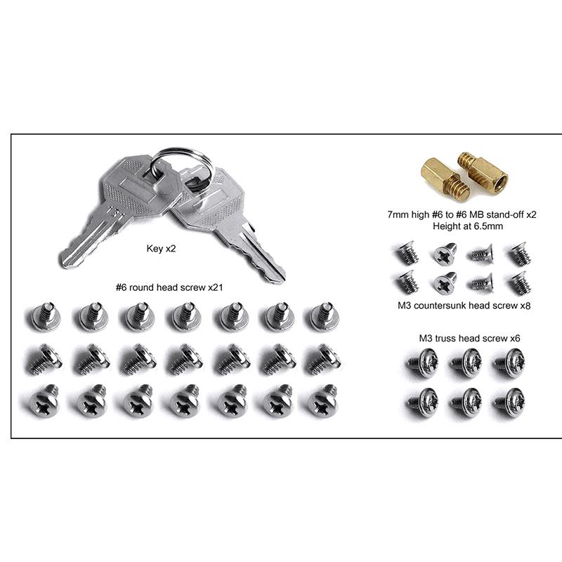* Accessory: MB stand-off x2, #6 round x21, M3 countersunk x8, M3 truss x6, 2 keys