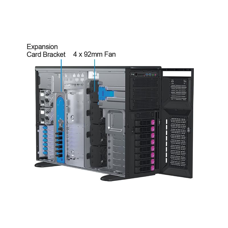 | System Cooling | 4 x 92mm Swappable PWM Fans (Middle) 2 x 80mm Swappable PWM Fans (Rear) 1 x 80mm Swappable PWM Fans (Outer: Optional) |