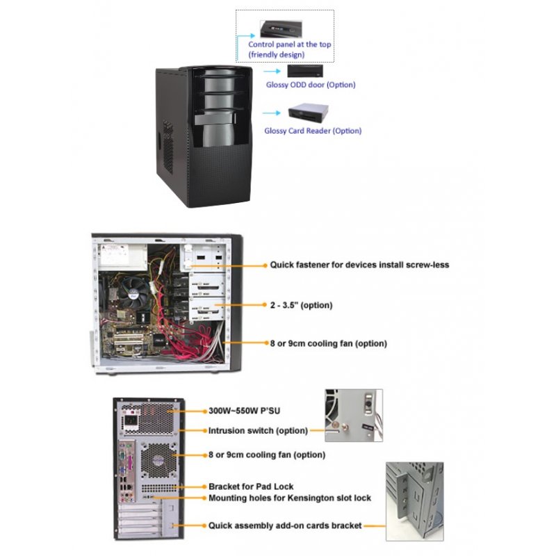 1 x 8cm or 9cm fan for front-mounted and rear-mounted