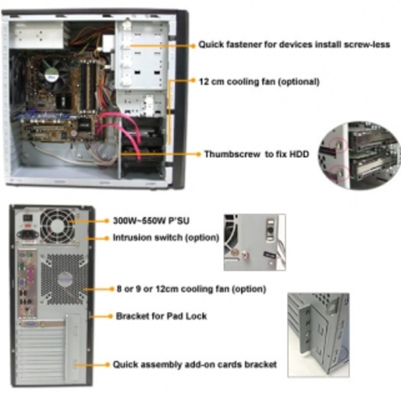 1 x 8cm or 9cm or 12cm fan for rear-mounted